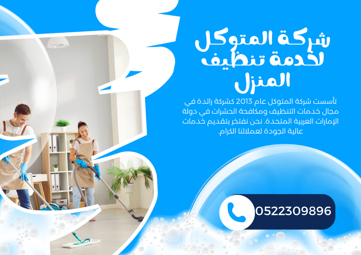 إذا كنت تبحث عن أفضل شركة تنظيف في دبي توفر خدمات متكاملة وبجودة عالية، فإن شركة المتوكل هي الخيار الأمثل. تقدم شركة المتوكل جميع حلول التنظيف التي تشمل تنظيف الشقق، الفلل، المكاتب، والمنازل باستخدام أحدث المعدات والمواد الفعالة.