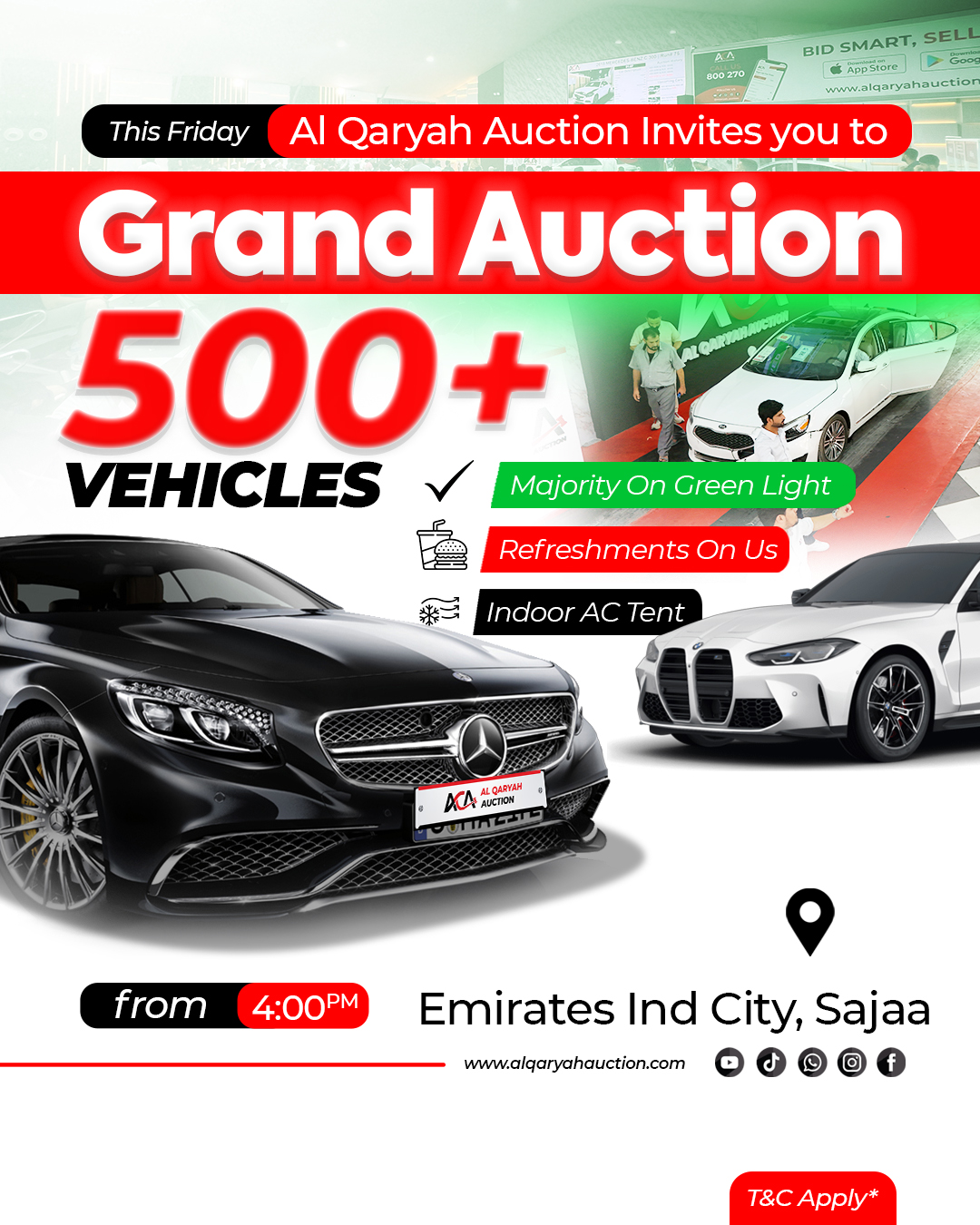 Step into the future of buying and selling cars with the UAE’s leading automotive auction platform. Since 2011, Al Qaryah Auction has brought you a wide range of vehicles—from brand-new and used cars to luxury, classic, and salvage models—all through live, transparent auctions across Sharjah, Dubai, and beyond. Built on integrity, innovation, and a commitment to customer satisfaction, we make it simple to find the perfect ride or sell your car with confidence.