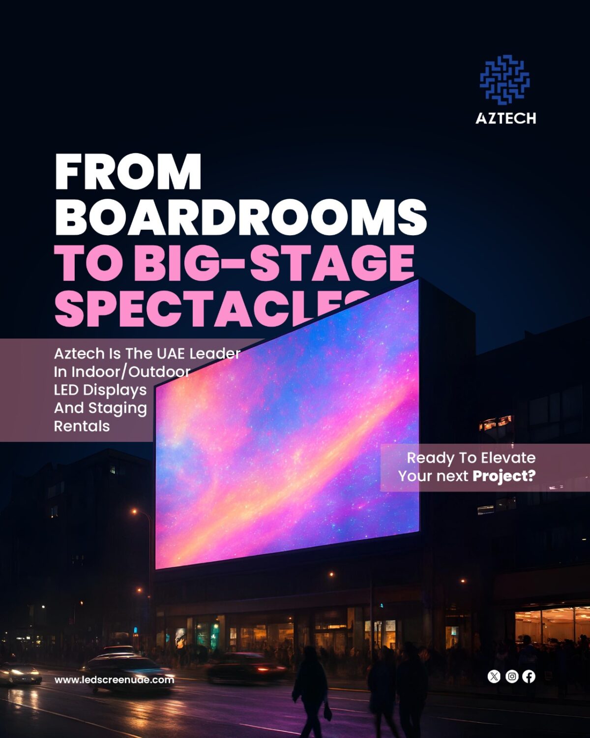 Whether you’re looking for customized LED screens in Dubai, outdoor LED display systems in the UAE, or smart audio visual installations for your business — AZtech ensures world-class quality, on-time delivery, and unmatched reliability. Services Offered: