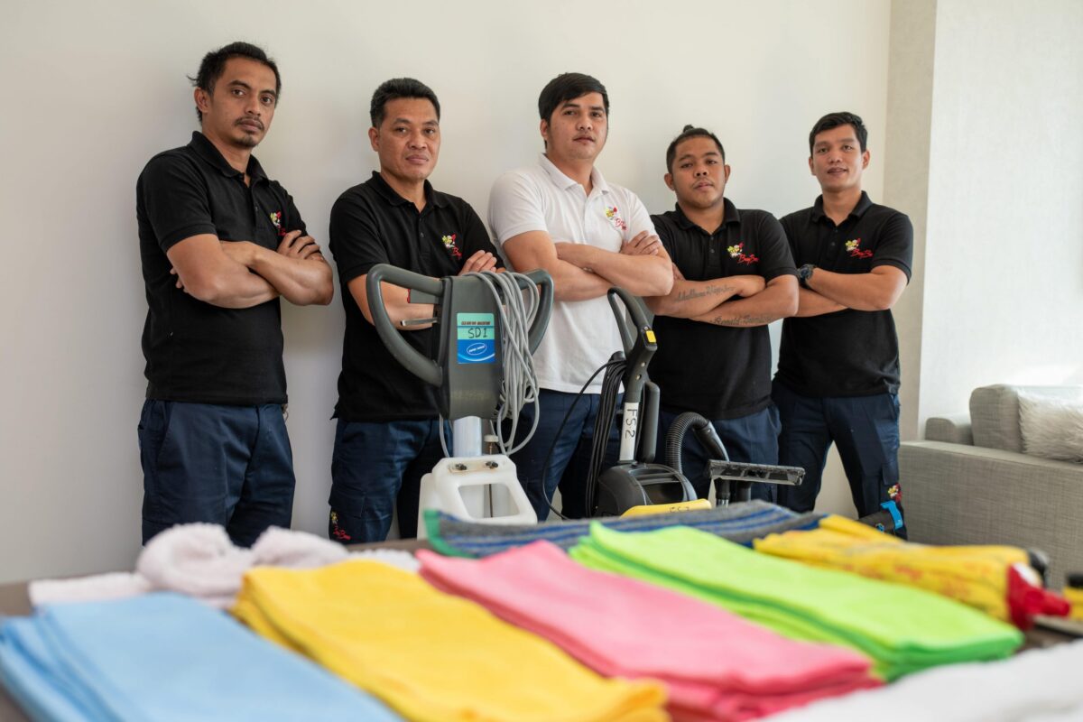 Every team member is vetted, bonded, and insured. Equipment is sourced from Kärcher (Germany). Hygiene products come from Diversey and CHEMEX — two globally trusted industrial brands. Pest control is handled in partnership with Elite Express, a UAE pest management firm with 18 years of local experience.