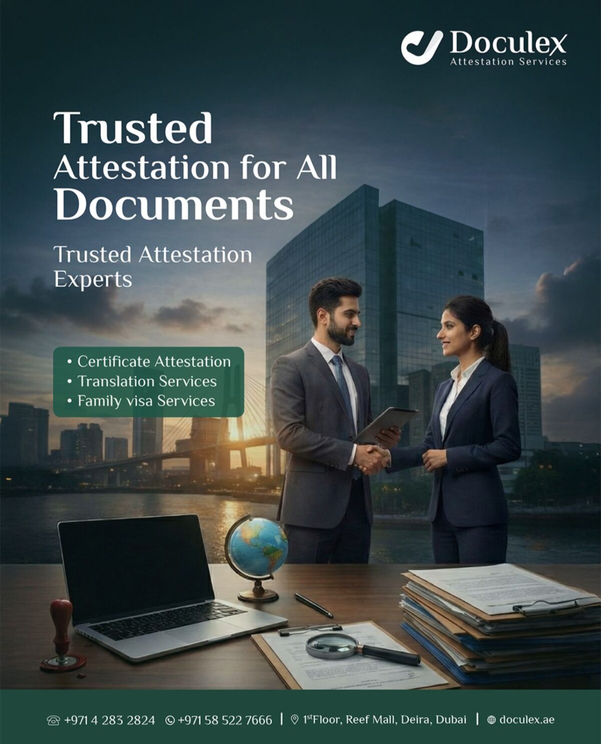 Doculex Attestation, with 10+ years of trusted expertise, specializes in fast, reliable, and hassle-free certificate attestation and document legalization services in Dubai. From educational, personal, and commercial documents to powers of attorney, we ensure your documents are processed efficiently, recognized globally, and ready for your future opportunities.