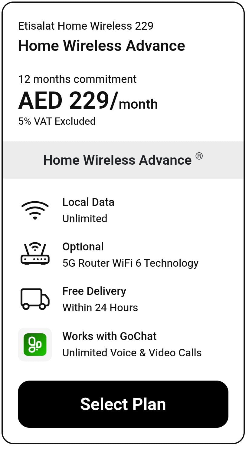 Home Wifi Offers UAE connects households across the United Arab Emirates with reliable Etisalat-powered internet solutions. As a dedicated partner, we specialise in matching families and remote workers with the ideal home Wi-Fi plans, from ultra-fast fiber broadband to flexible 5G home internet packages.