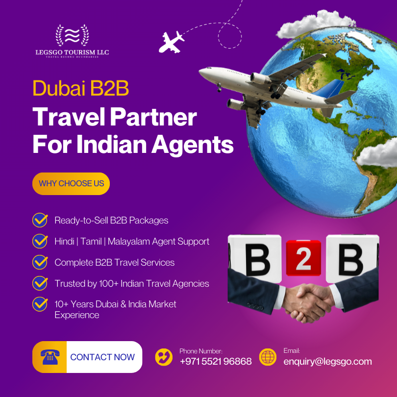 LEGSGO TOURISM LLC is a Dubai-based Destination Management Company (DMC) with operational presence in India and Europe, delivering reliable B2B, corporate, inbound, and outbound travel solutions. As a DMC, we work exclusively with travel agencies, tour operators, and corporate partners, providing on-ground expertise, competitive contracting, and end-to-end destination services across the UAE and international markets.