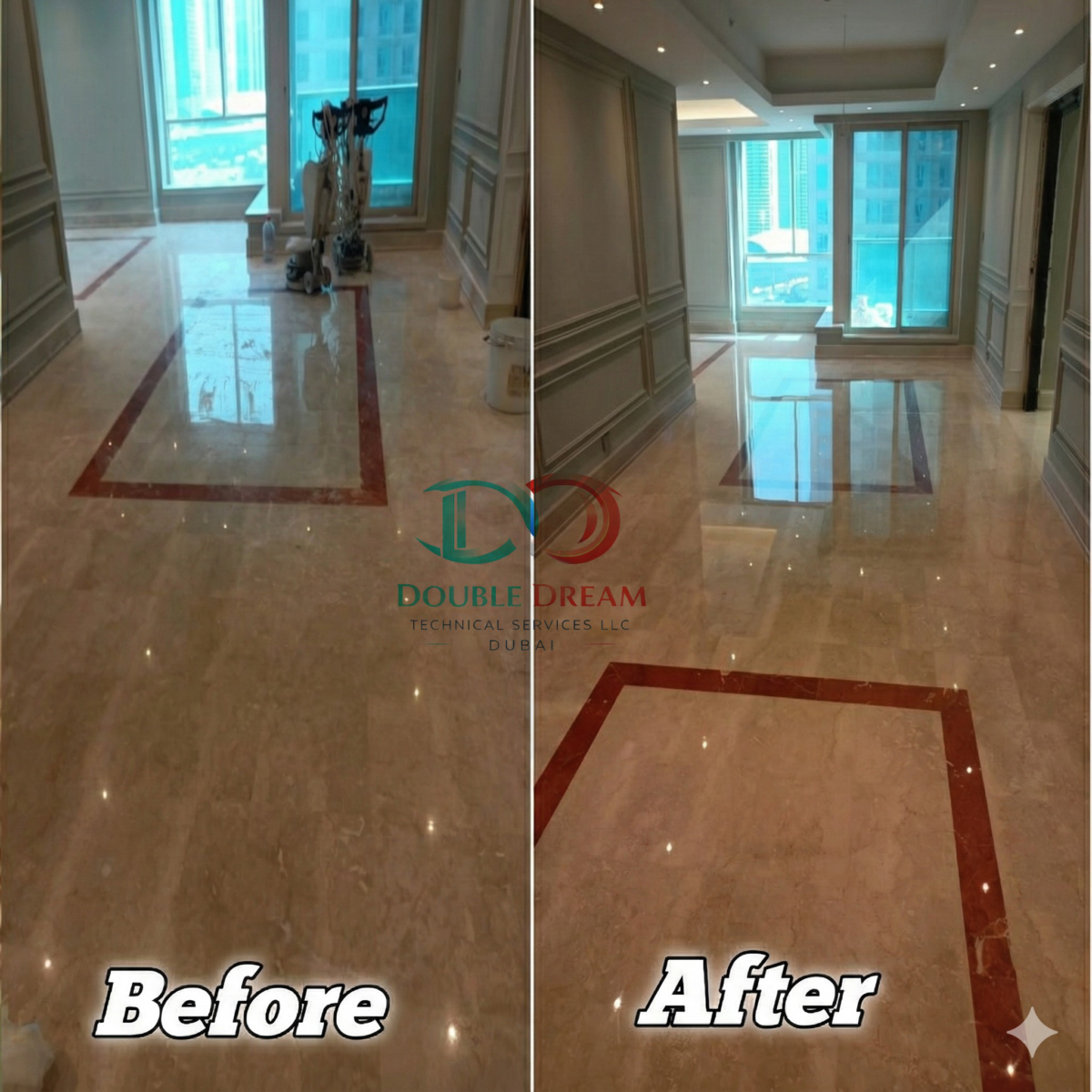 Double Dream Technical Services LLC is a professional marble polishing company in Dubai, providing reliable marble care and restoration services since 2018. With 8+ years of experience, we specialize in restoring dull, scratched, and damaged marble surfaces to their original shine and smooth finish.