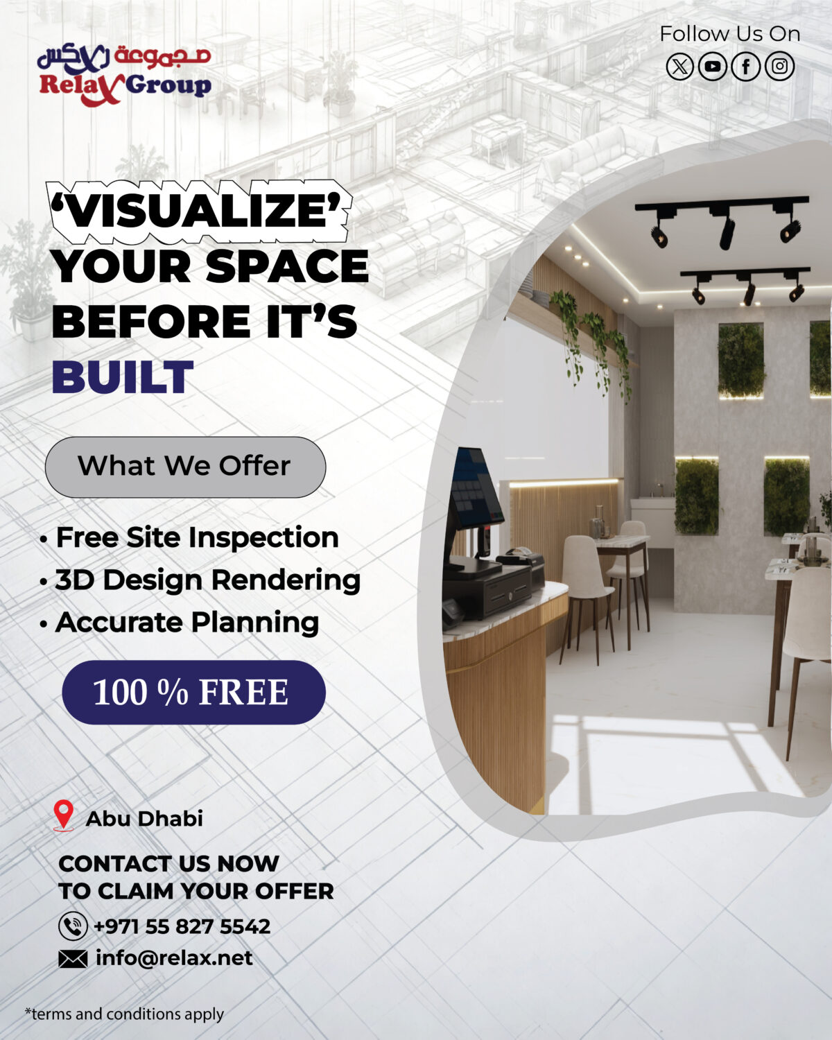 Relax Group is a leading interior fit-out, waterproofing and building contracting company in the UAE, delivering end-to-end solutions for residential, commercial and industrial projects. Based in Dubai and Abu Dhabi, we specialize in office and retail fit-outs, villa renovations, roof and basement waterproofing, building maintenance, and 3D interior design & visualization services. Our expert team ensures high-quality workmanship, transparent costing, timely project delivery, and complete turnkey solutions tailored to every client’s needs. With advanced planning tools and a commitment to excellence, Relax Group helps you visualize, build and protect your space with confidence.