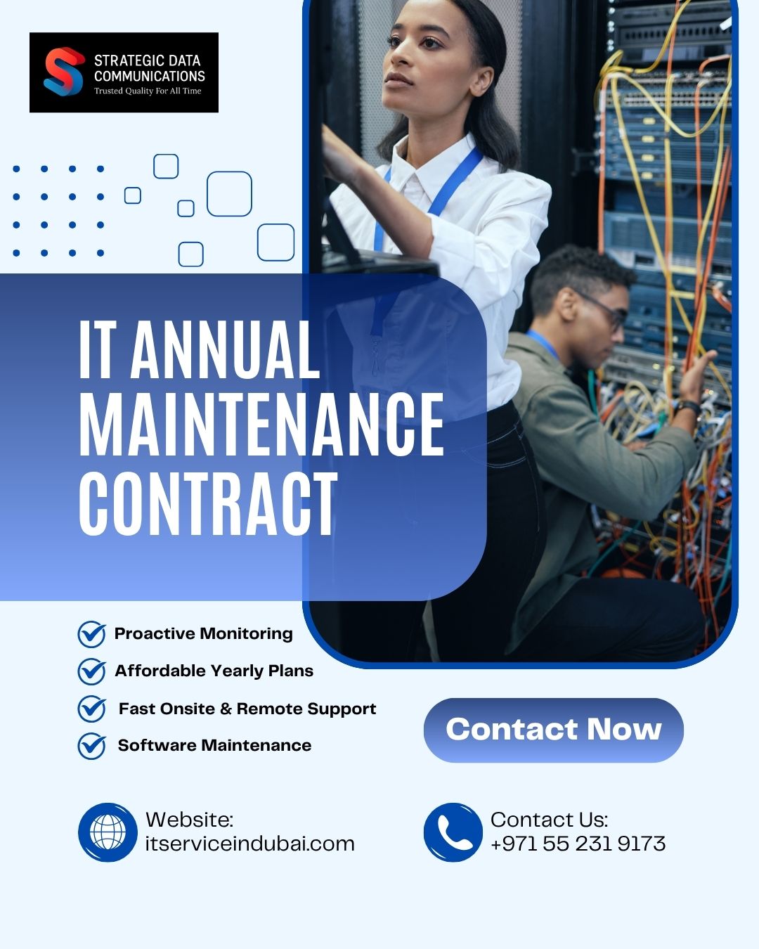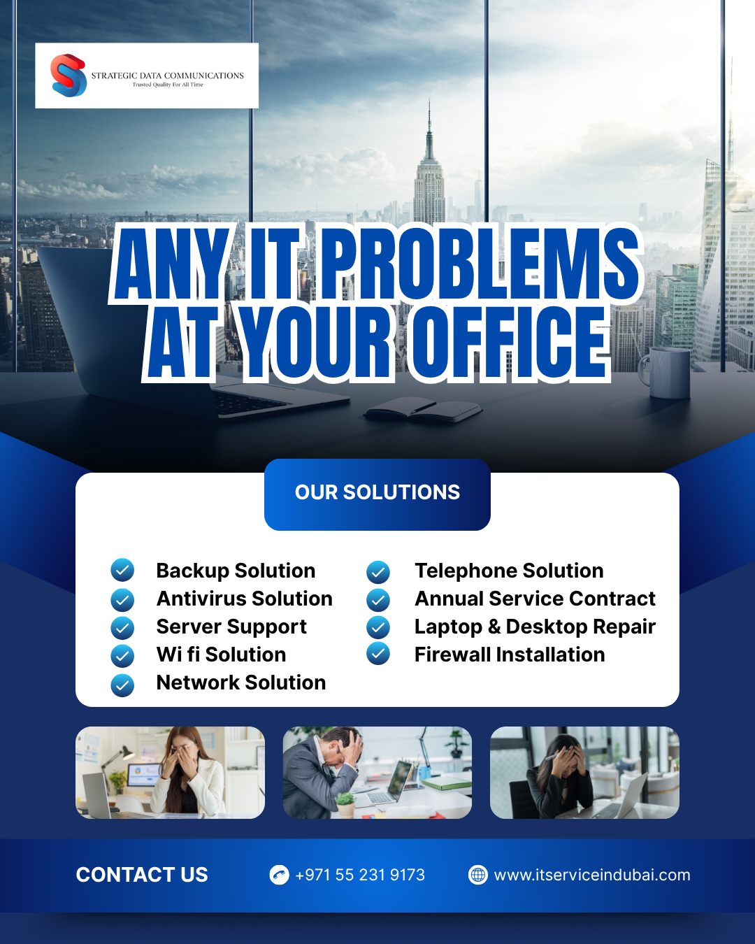 We are among those IT services provider, who have helped small-scale and large-scale industries in accomplishing their IT-related needs. We offer services like IT services, network solutions, server solutions, and data storage, and many more to all the multiple sectors. We all focus on improving the productivity, reliability, and security of clients with our innovative services. Being in the business of IT for the last 10 years, we have gained a great reputation and trust from our customers. We have our office in Dubai, and we have clients, which are spread all across the area of the United Arab Emirates.