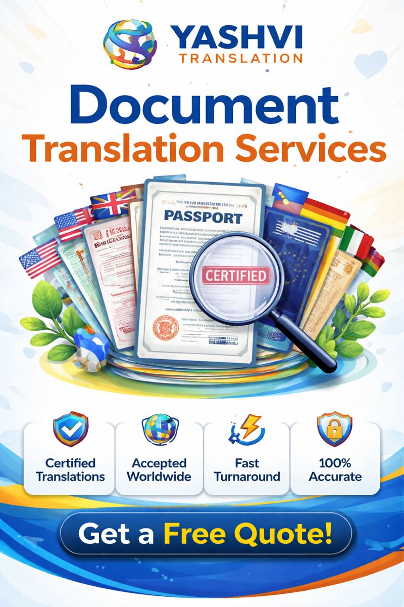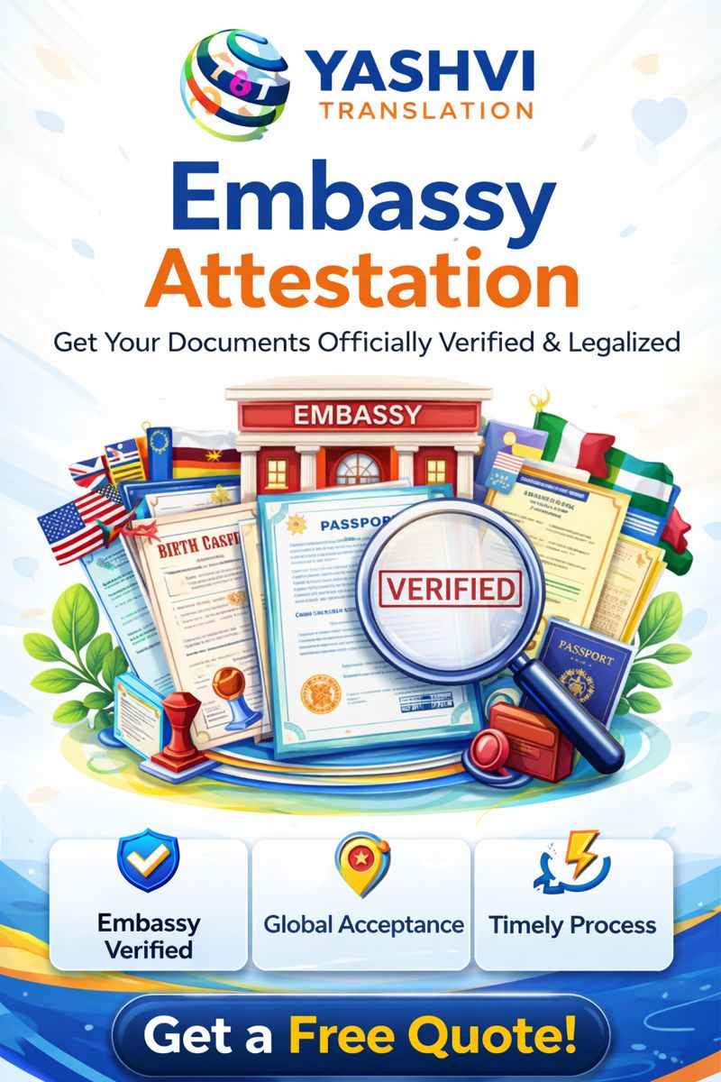 Yashvi Translation is a trusted provider of high-quality document translation services and embassy attestation support designed to meet the needs of individuals, students, professionals, and businesses in today’s global environment. With a strong focus on accuracy, compliance, and client satisfaction, we help clients overcome language barriers and navigate official requirements seamlessly.